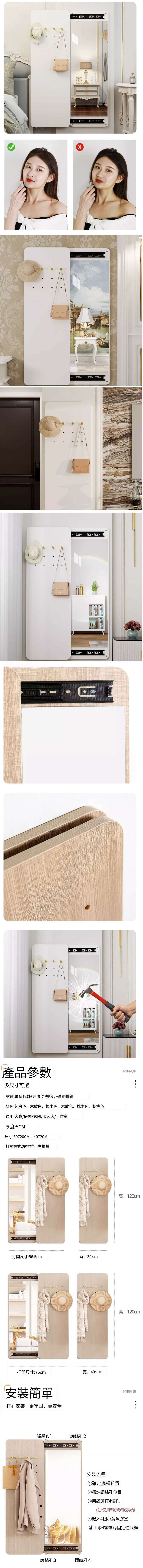 熱賣可推拉遮擋全身鏡(30*120 B款-橡木-右推拉)