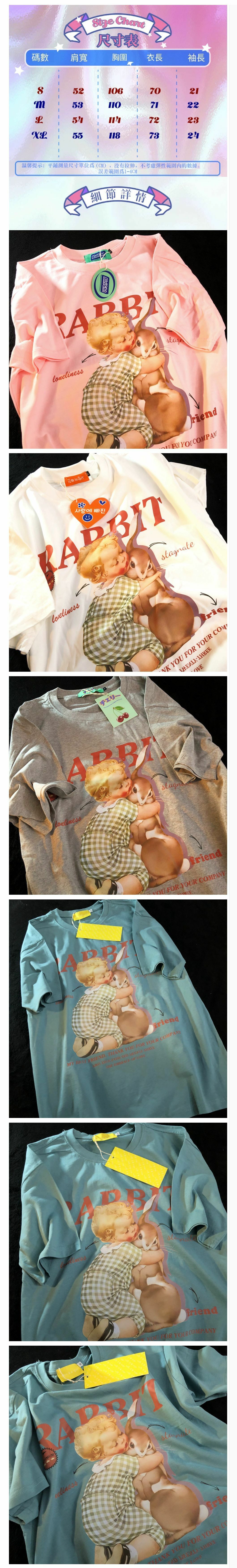 熱賣兔兔情侶復古短袖T恤【灰色】【S-XL碼】(下單後請聯絡客服確認發貨尺碼)