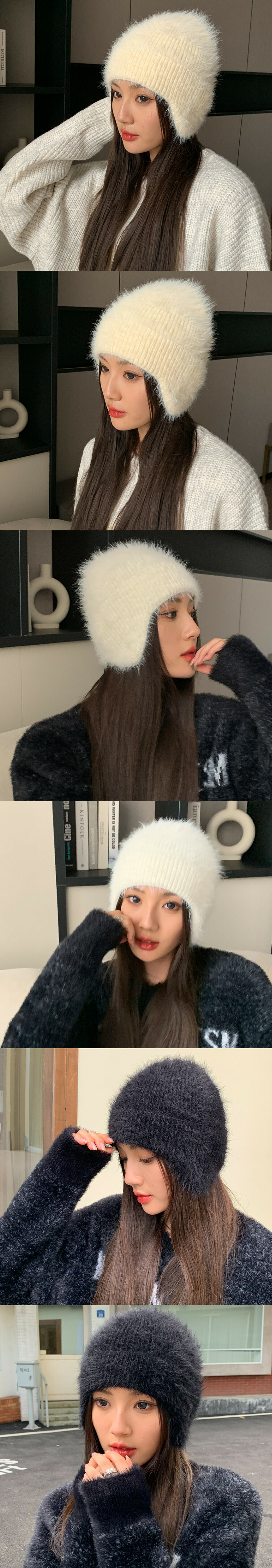 熱賣兔毛針織帽【A-451米白色兔毛針織帽】【均碼】