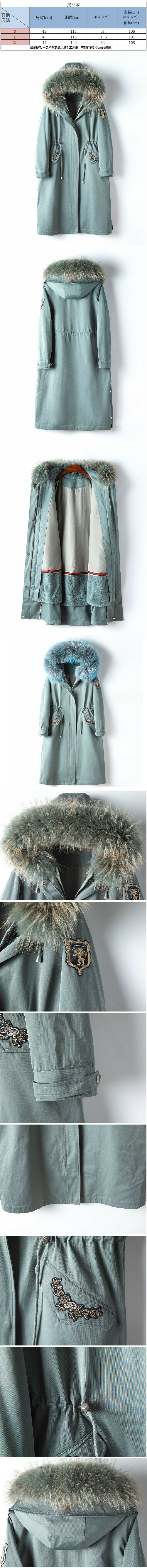 熱賣貉子毛領長款外套(M/L碼)(青色)(下單後聯絡客服確認發貨尺碼)