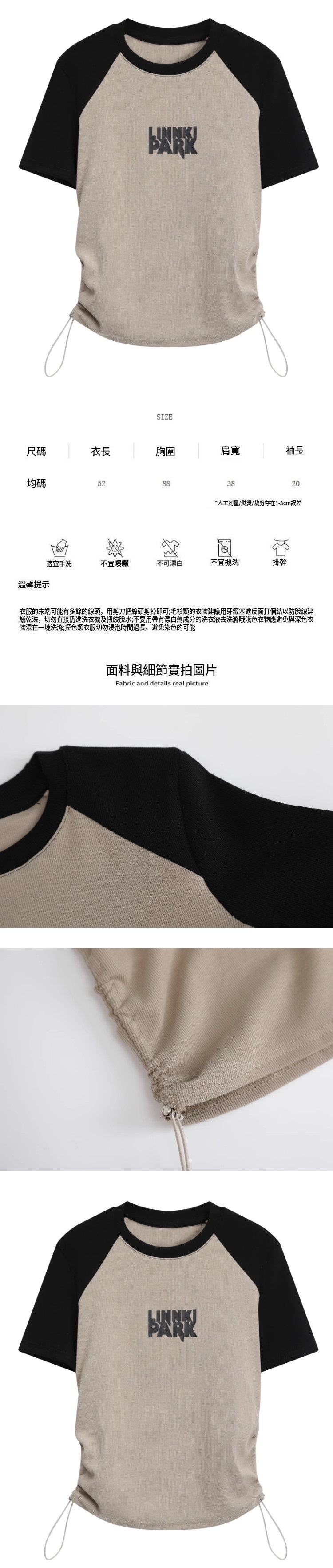 熱賣插肩袖抽繩短袖T恤(卡其色)(均碼)