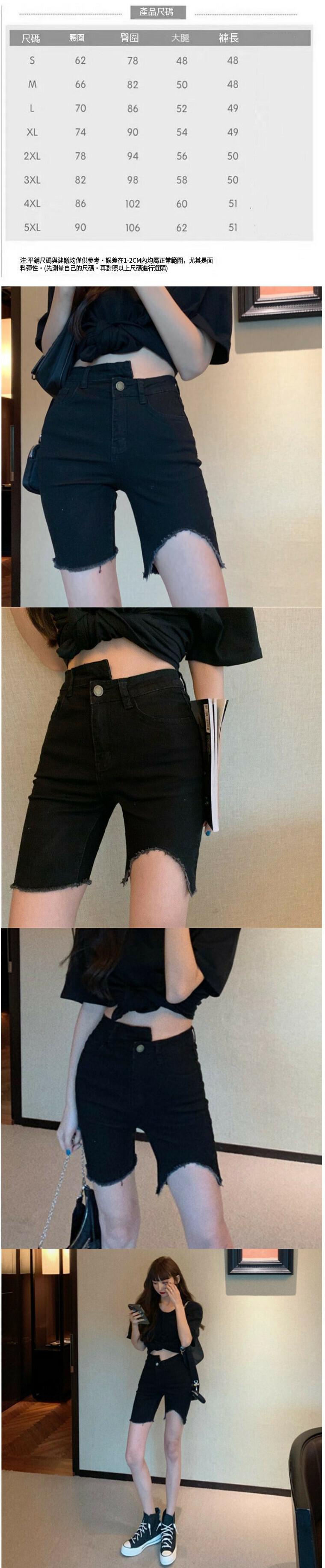 熱賣毛邊五分褲牛仔短褲【黑色】【XS-XL碼】(下單後請聯絡客服確認發貨尺碼)