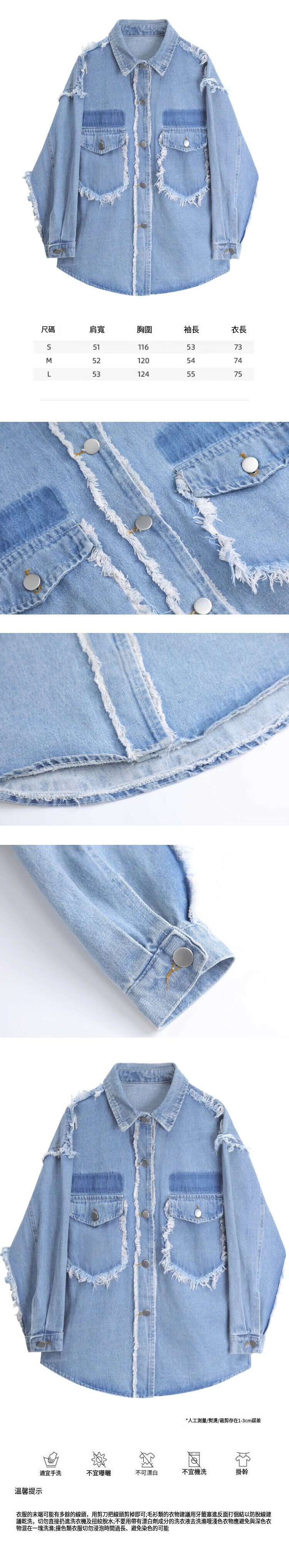 熱賣毛邊寬鬆牛仔襯衫(湖藍色)(S-L碼)(下單後聯絡客服確認發貨尺碼)