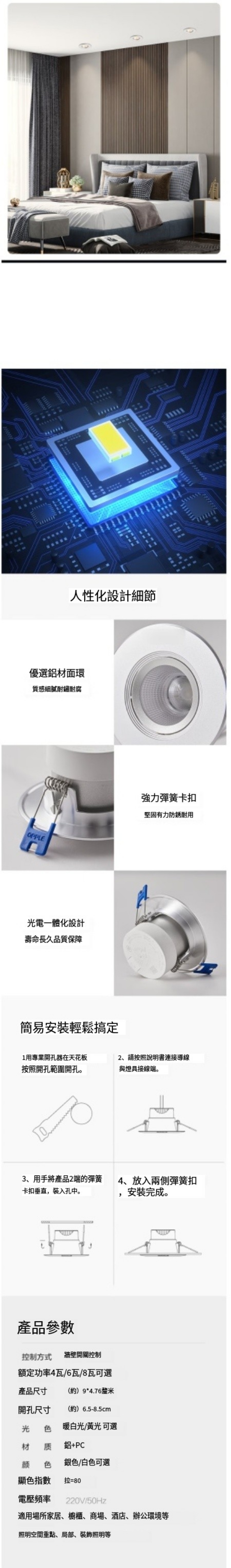 熱賣嵌入射燈(銀色暖白光/4瓦/開孔6.5-8.5cm)