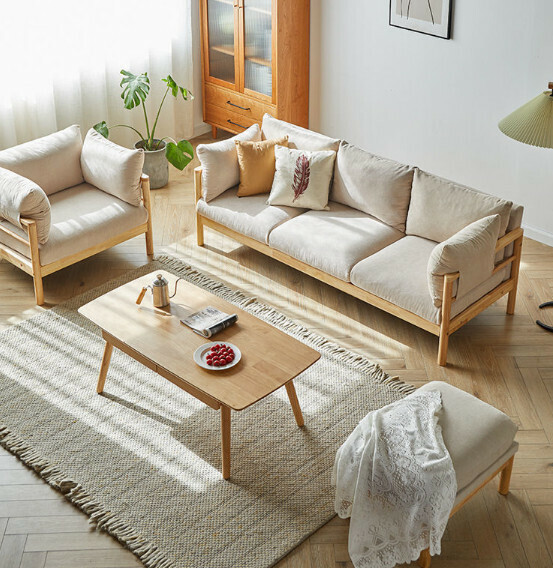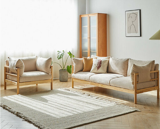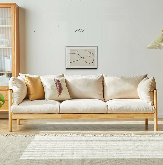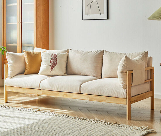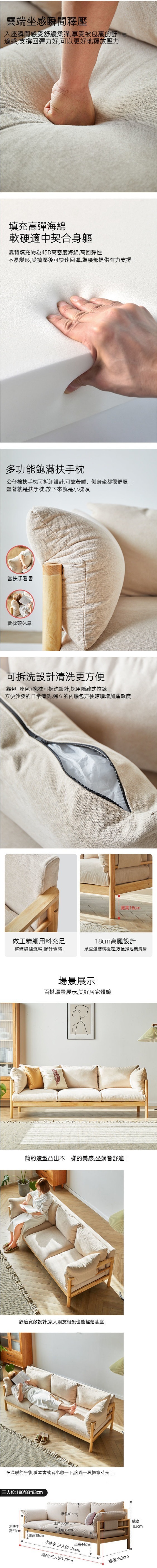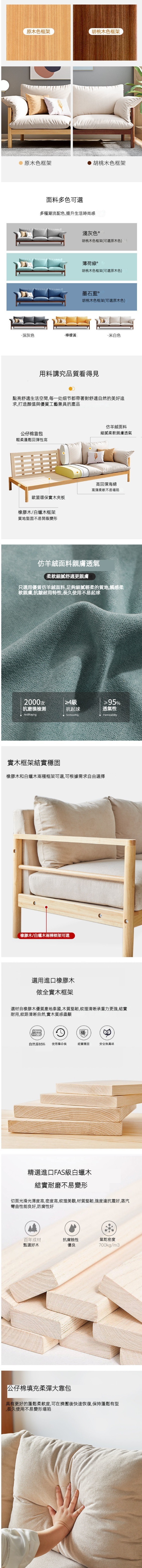 熱賣可拆洗布藝實木沙發(墨石藍+胡桃木色【白蠟木框架】)(三人位)