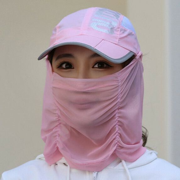 熱賣可拆卸遮臉防曬遮陽鴨舌帽女(藏藍色)
