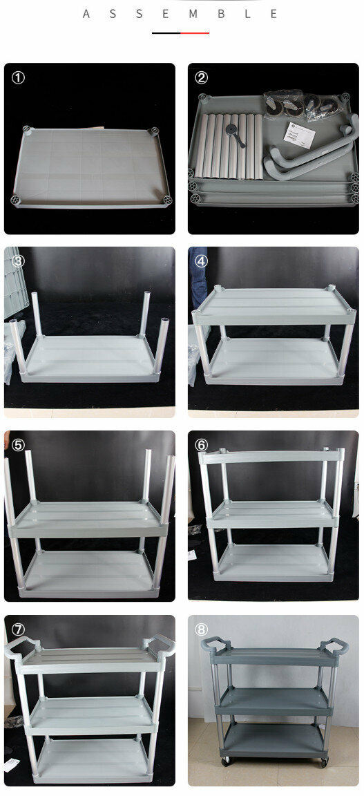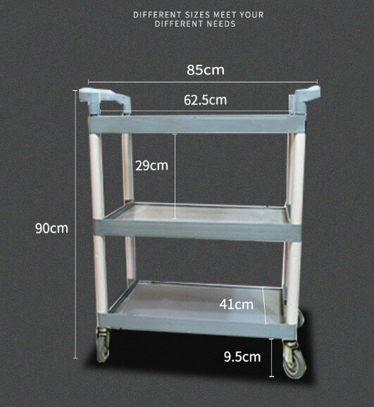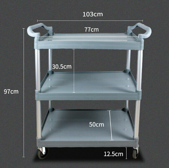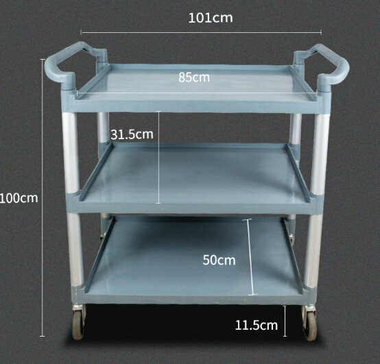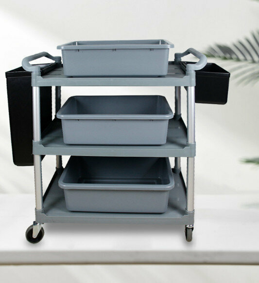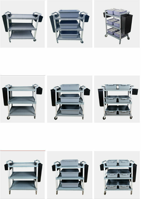 熱賣餐廳塑膠三層手推送餐車(加厚款大號+2掛桶+3個04灰盆)