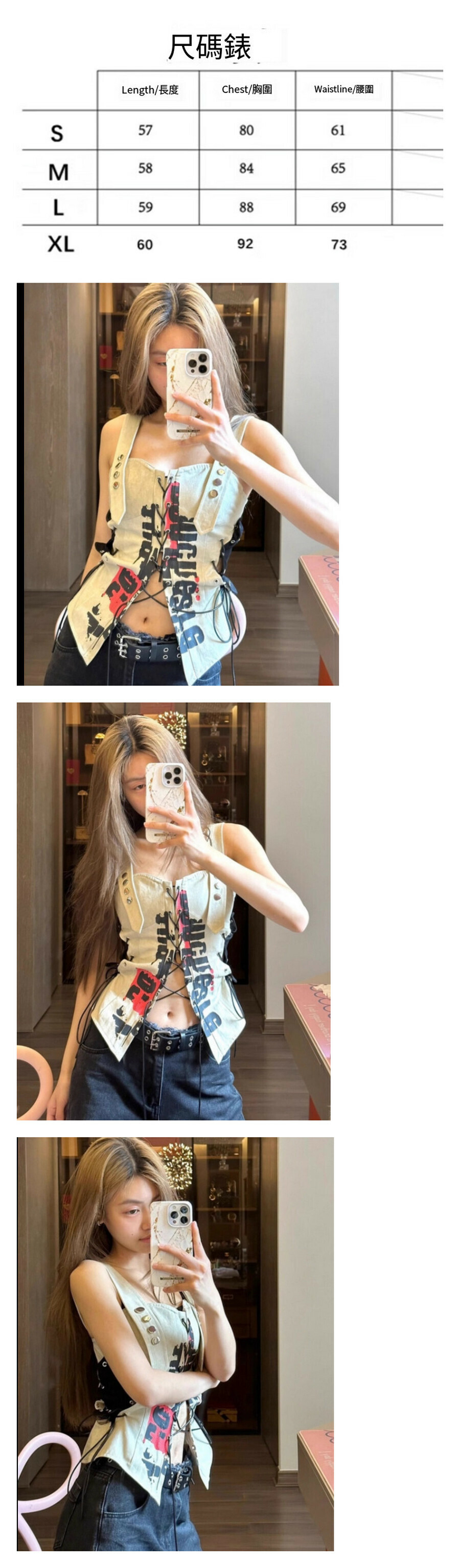 熱賣復古米色印花背心【米色】尺碼【S碼—XL碼】【下單後請聯絡客服確認發貨尺碼】