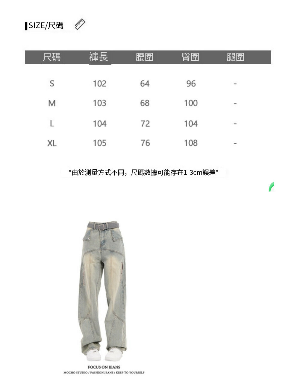 熱賣復古設計感闊腿牛仔褲【藍色】尺碼【S碼-XL碼】【下單後請聯絡客服確認發貨尺碼】