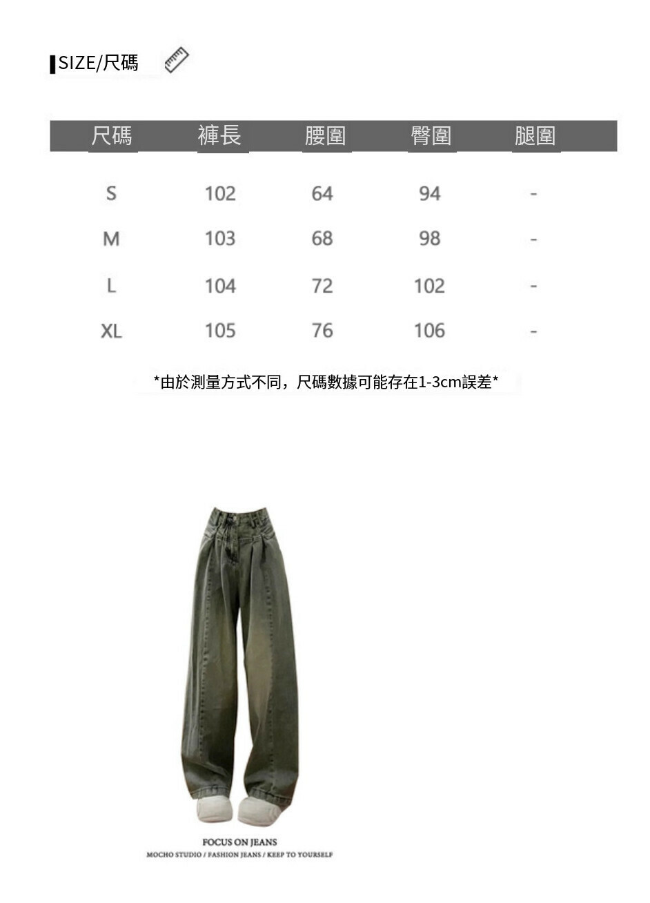 熱賣復古設計感闊腿牛仔褲【淺藍色】尺碼【S碼-XL碼】【下單後請聯絡客服確認發貨尺碼】