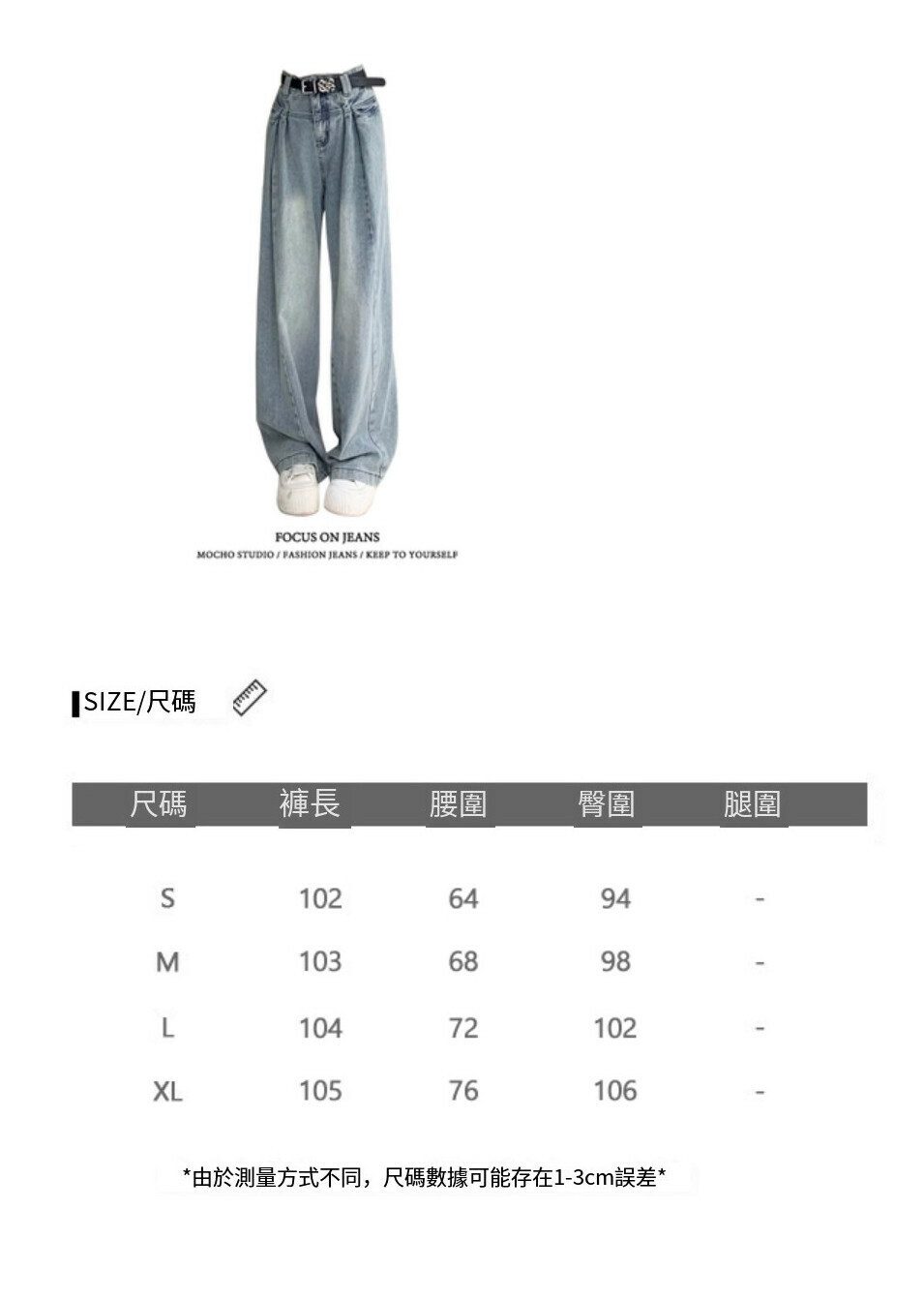 熱賣復古設計感闊腿牛仔褲【淺藍色】尺碼【S碼-XL碼】【下單後請聯絡客服確認發貨尺碼】
