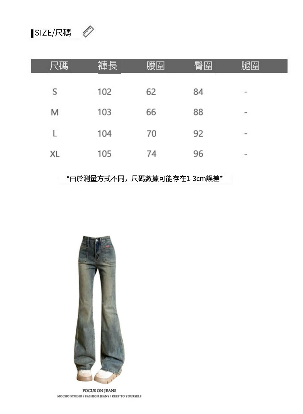 熱賣復古做舊微喇叭牛仔褲【復古藍】尺碼【S碼-XL碼】【下單後請聯絡客服確認發貨尺碼】
