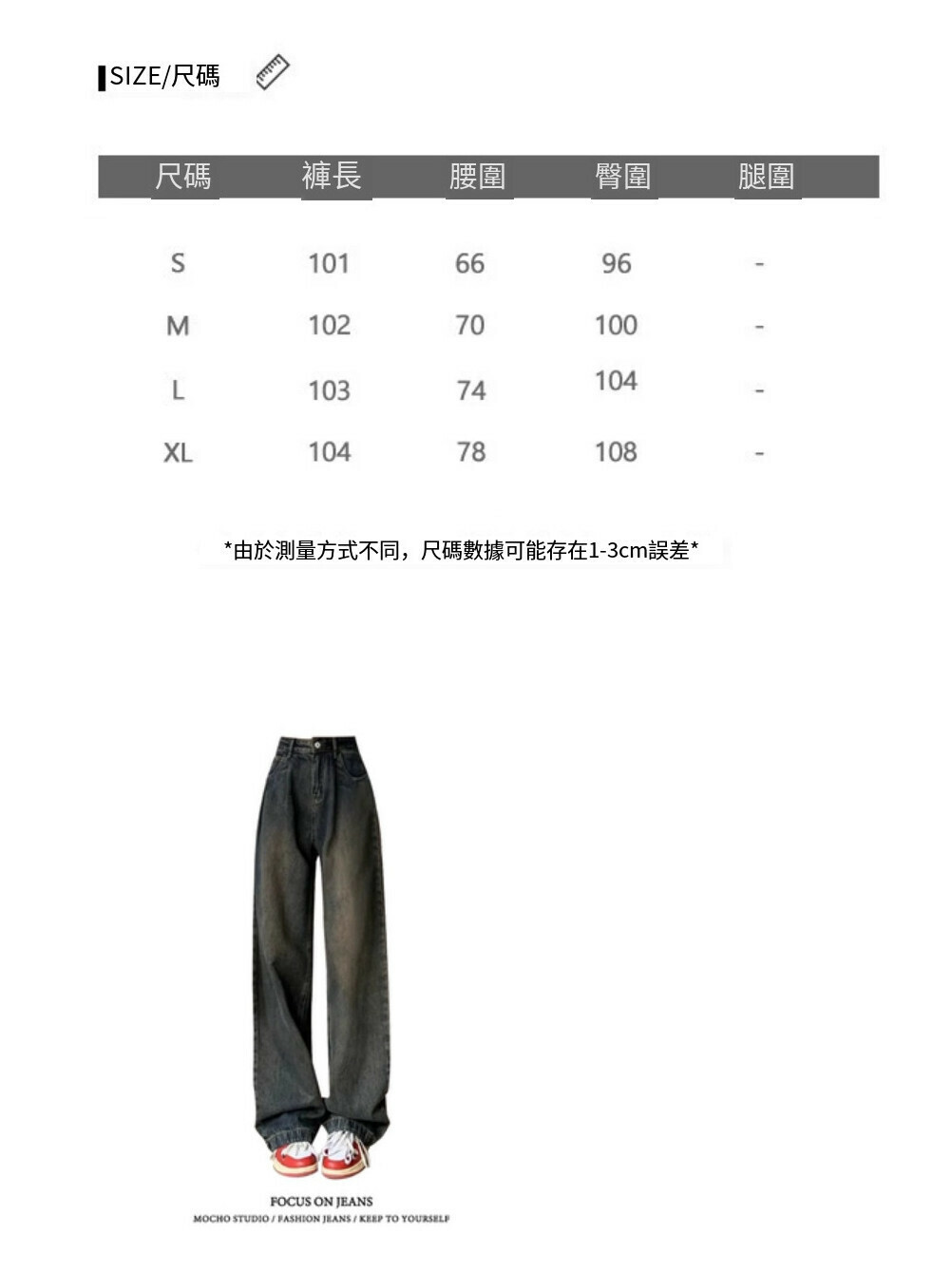 熱賣復古垂感闊腿牛仔褲【岩灰色】尺碼【S碼-XL碼】【下單後請聯絡客服確認發貨尺碼】