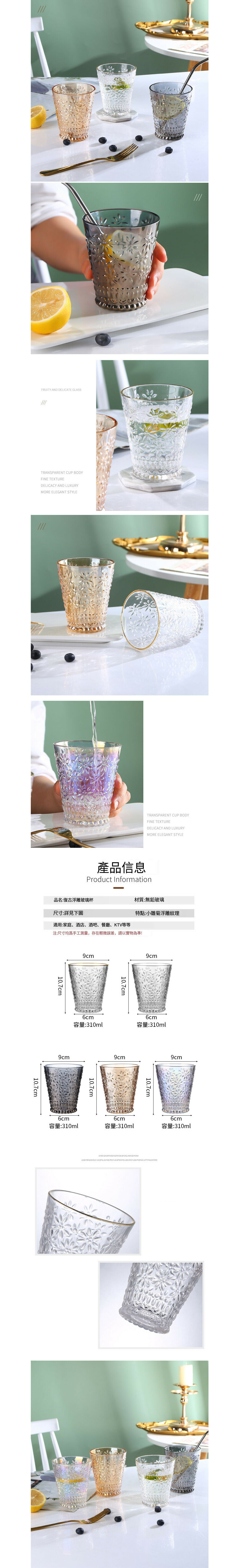 熱賣復古浮雕玻璃水杯透明果汁咖啡杯子(透明-雕花杯-【2個裝】)