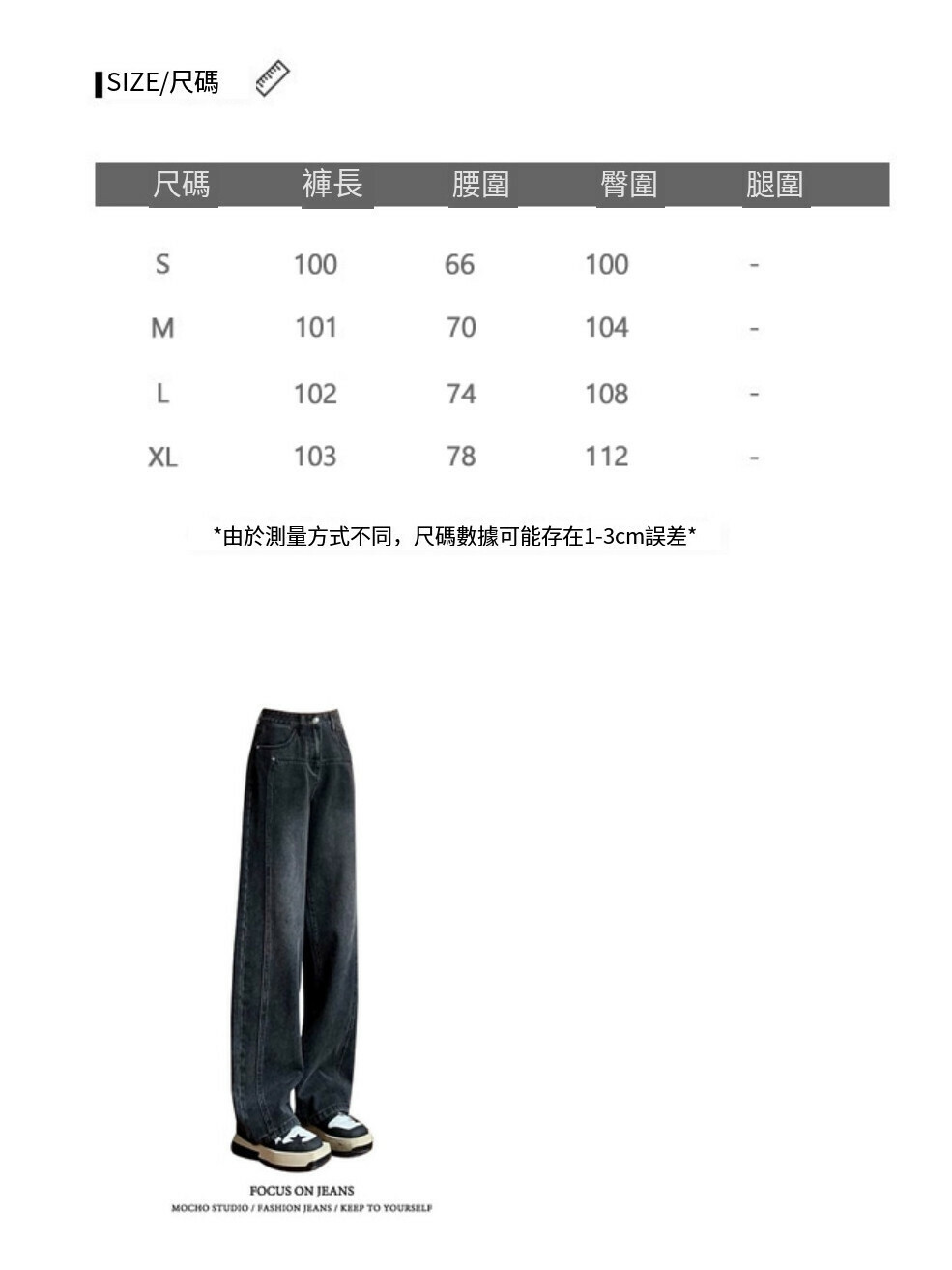 熱賣復古高街直筒牛仔褲【黑灰色】尺碼【S碼-XL碼】【下單後請聯絡客服確認發貨尺碼】