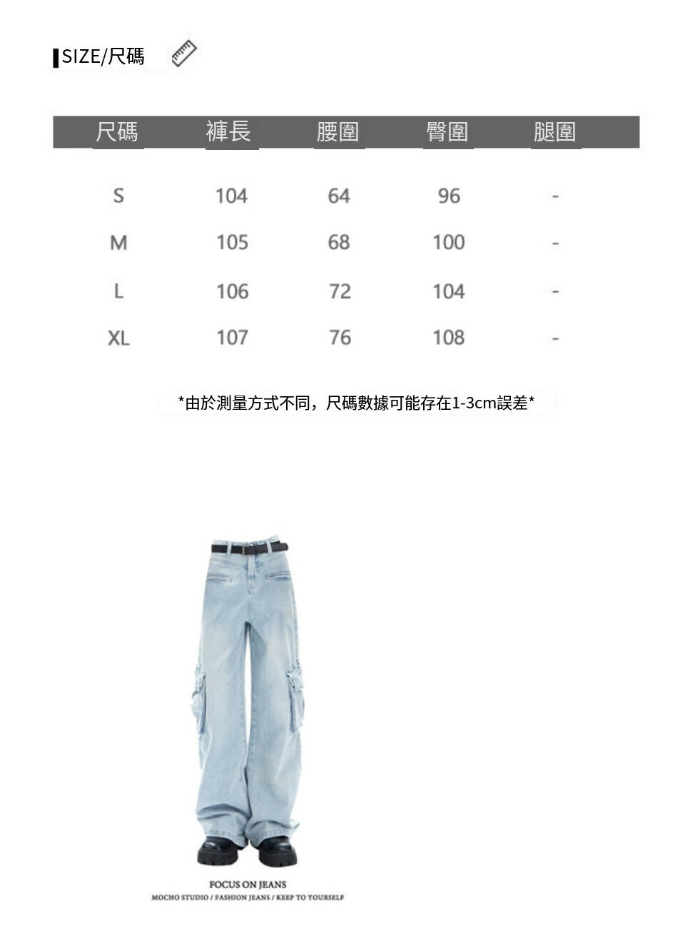 熱賣復古高腰工裝牛仔褲【淺藍色】尺碼【S碼-XL碼】【下單後請聯絡客服確認發貨尺碼】
