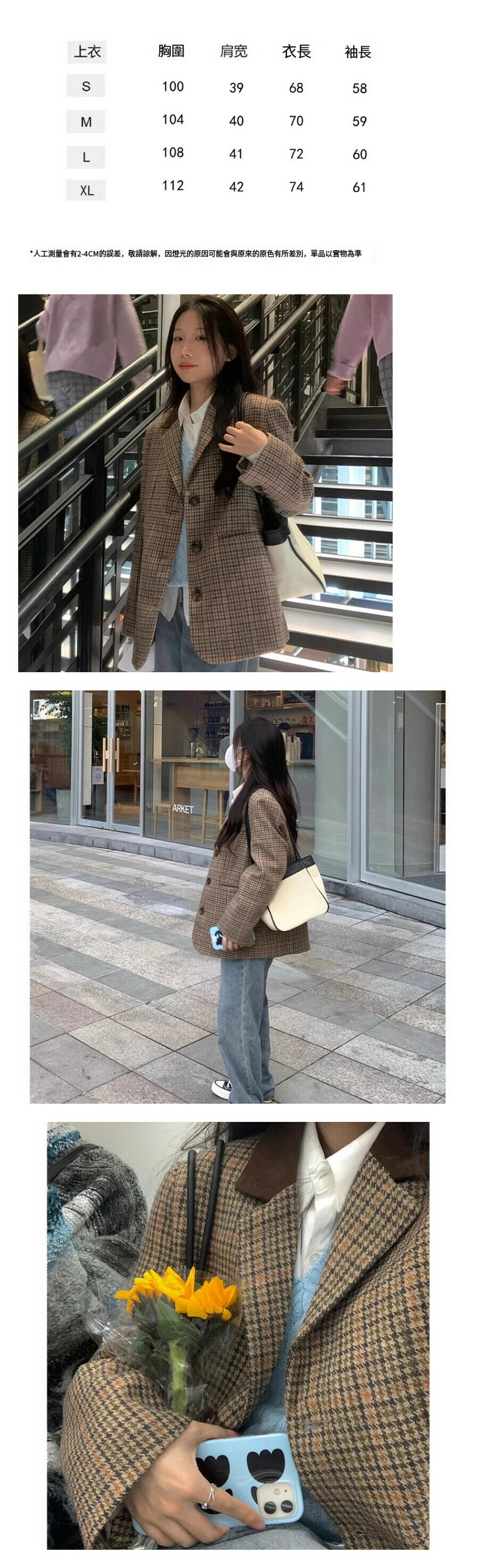 熱賣復古格子西裝外套【咖啡格子】尺碼【S碼—XL碼】【下單後請聯絡客服確認發貨尺碼】