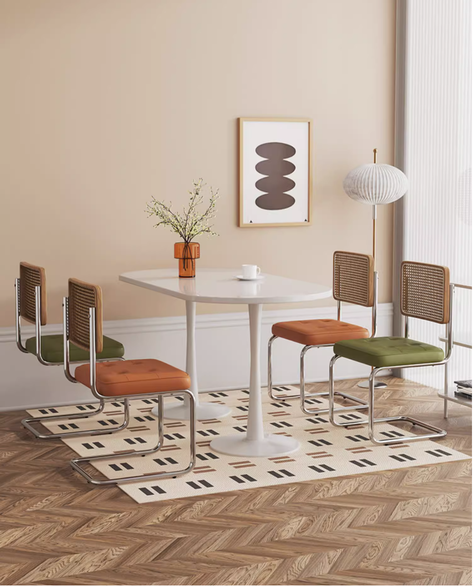 熱賣復古籐編靠背軟包坐墊餐椅(黑色靠背+綠色坐墊)(尺寸:高82CM,坐寬46CM)