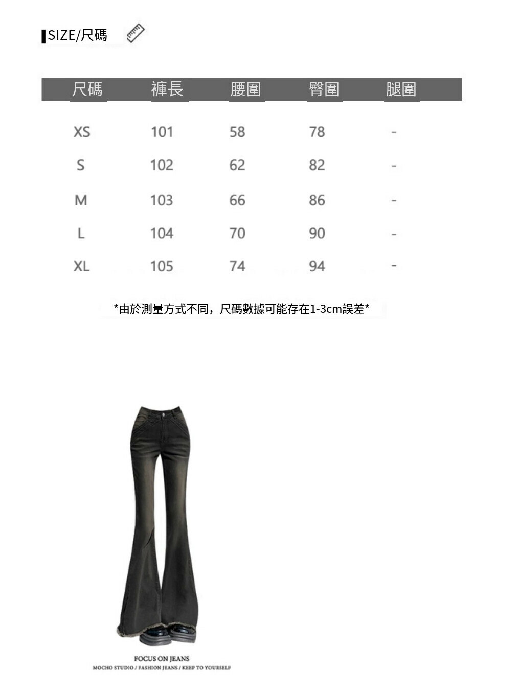熱賣復古毛邊微喇叭牛仔褲【黑灰色】尺碼【S碼-XL碼】【下單後請聯絡客服確認發貨尺碼】