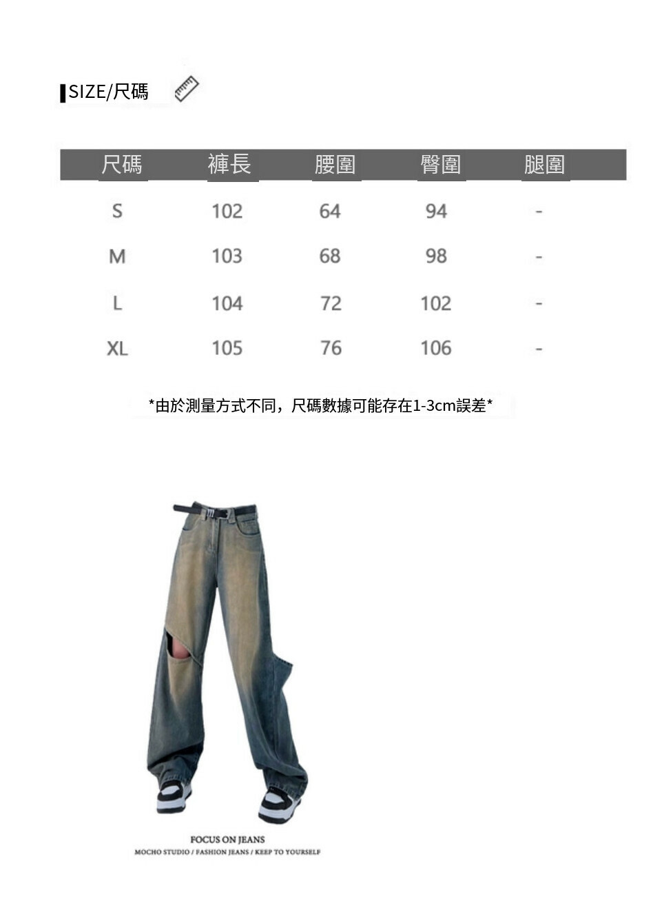 熱賣復古破洞牛仔褲【藍色】尺碼【S碼-XL碼】【下單後請聯絡客服確認發貨尺碼】
