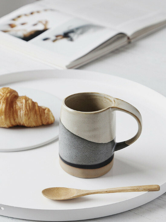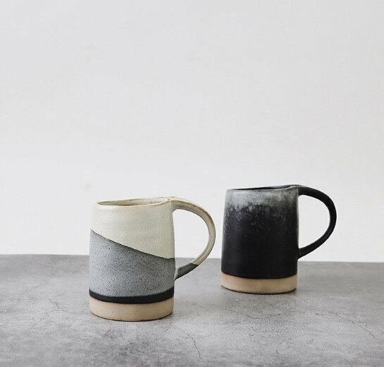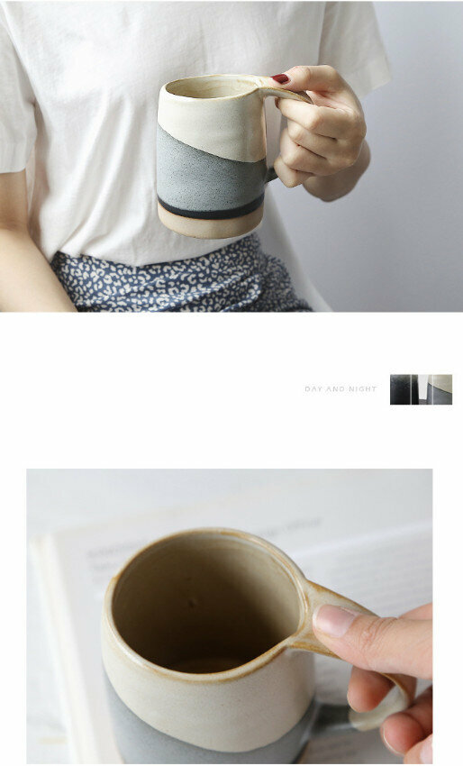 熱賣復古粗陶咖啡杯(晝夜杯-黑夜)【矮款】