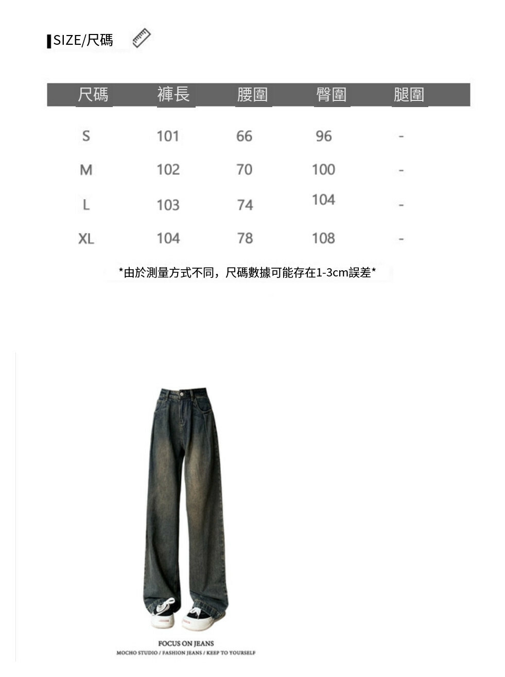 熱賣復古闊腿牛仔褲【岩灰色】尺碼【S碼-XL碼】【下單後請聯絡客服確認發貨尺碼】