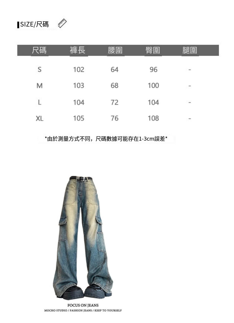 熱賣復古工裝牛仔褲【藍色】尺碼【S碼-XL碼】【下單後請聯絡客服確認發貨尺碼】