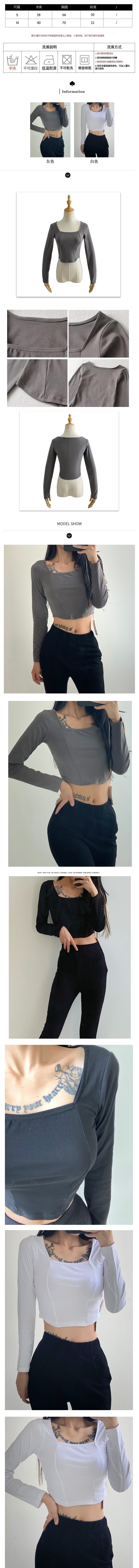 熱賣反線拼接大U領長袖T卹(黑色)(S/M碼)(下單後聯絡客服確認發貨尺碼)