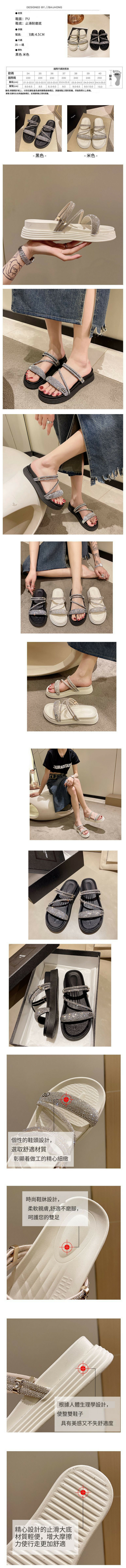 熱賣水鑽拖鞋(米白色 35碼-40碼)(下單後請聯絡客服確認發貨尺碼)