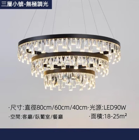 熱賣圓環led水晶吊燈(黑色燈體)(三圈80+60+40cm-無極調光)