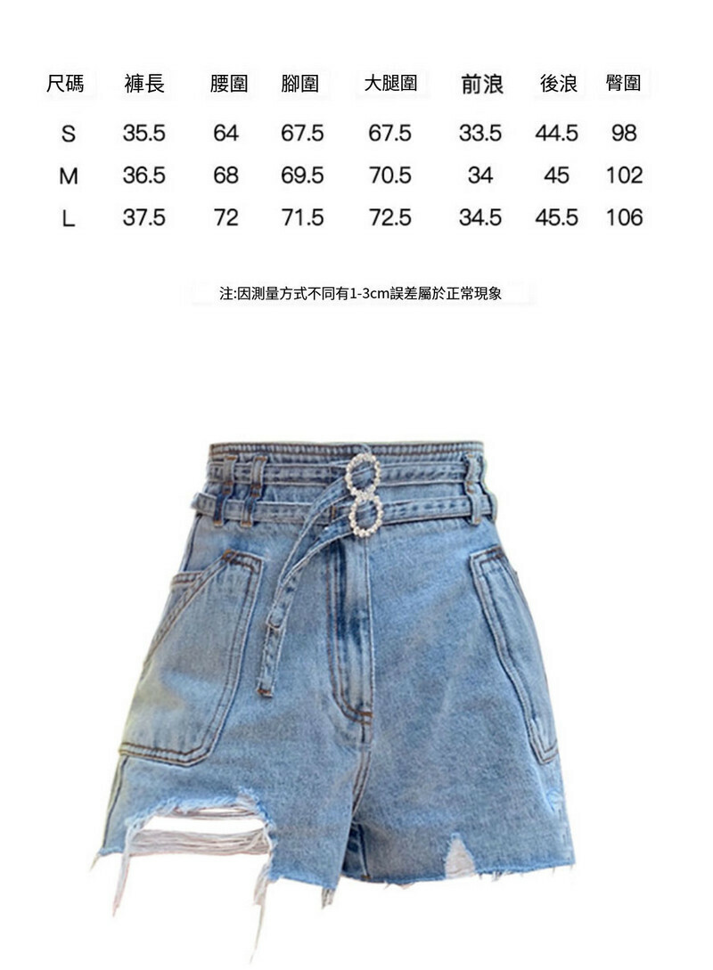熱賣破洞牛仔短褲(藍色 S碼-L碼)(下單後請聯絡客服確認發貨尺碼)