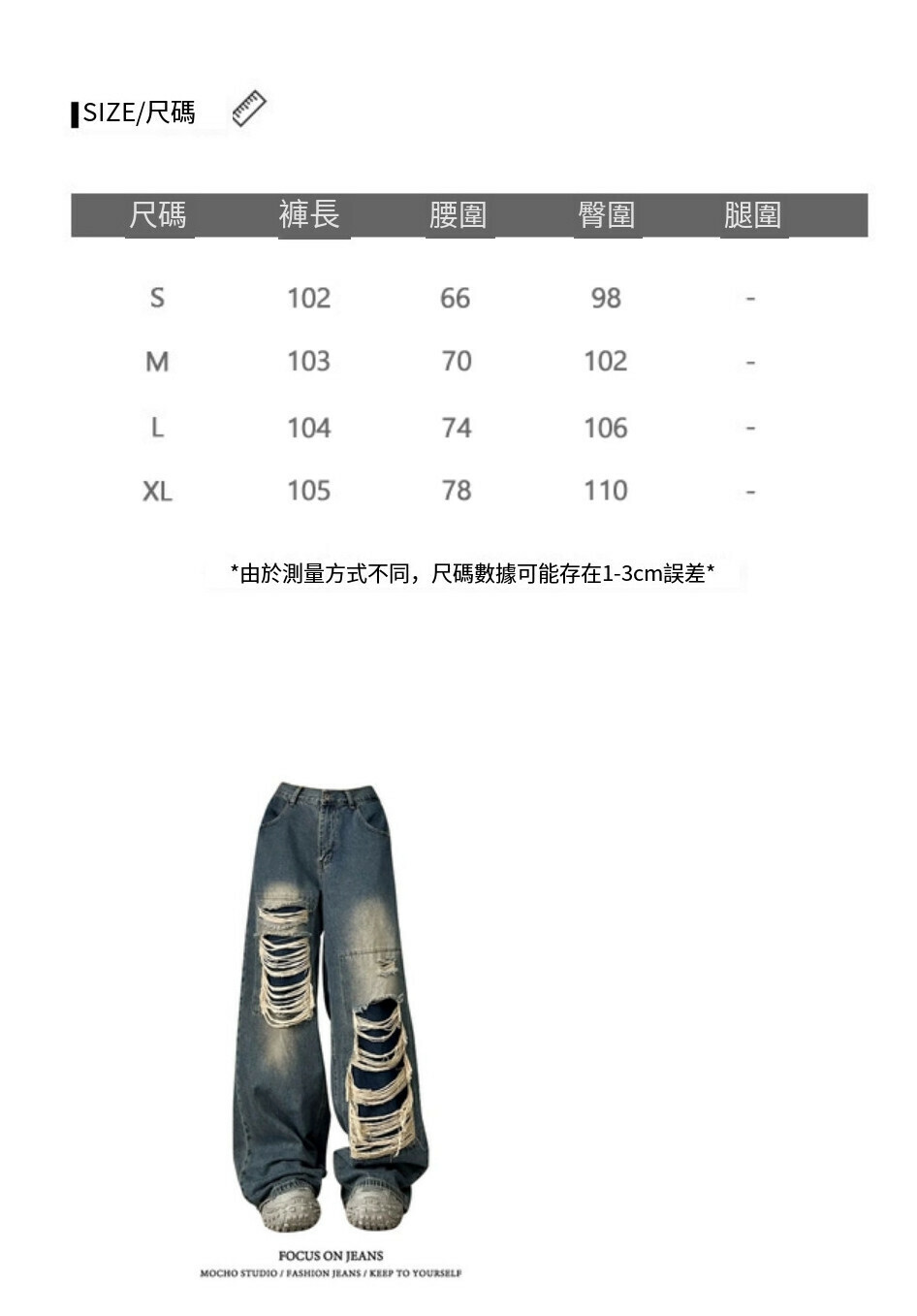 熱賣破洞牛仔褲【藍色】尺碼【S碼-XL碼】【下單後請聯絡客服確認發貨尺碼】