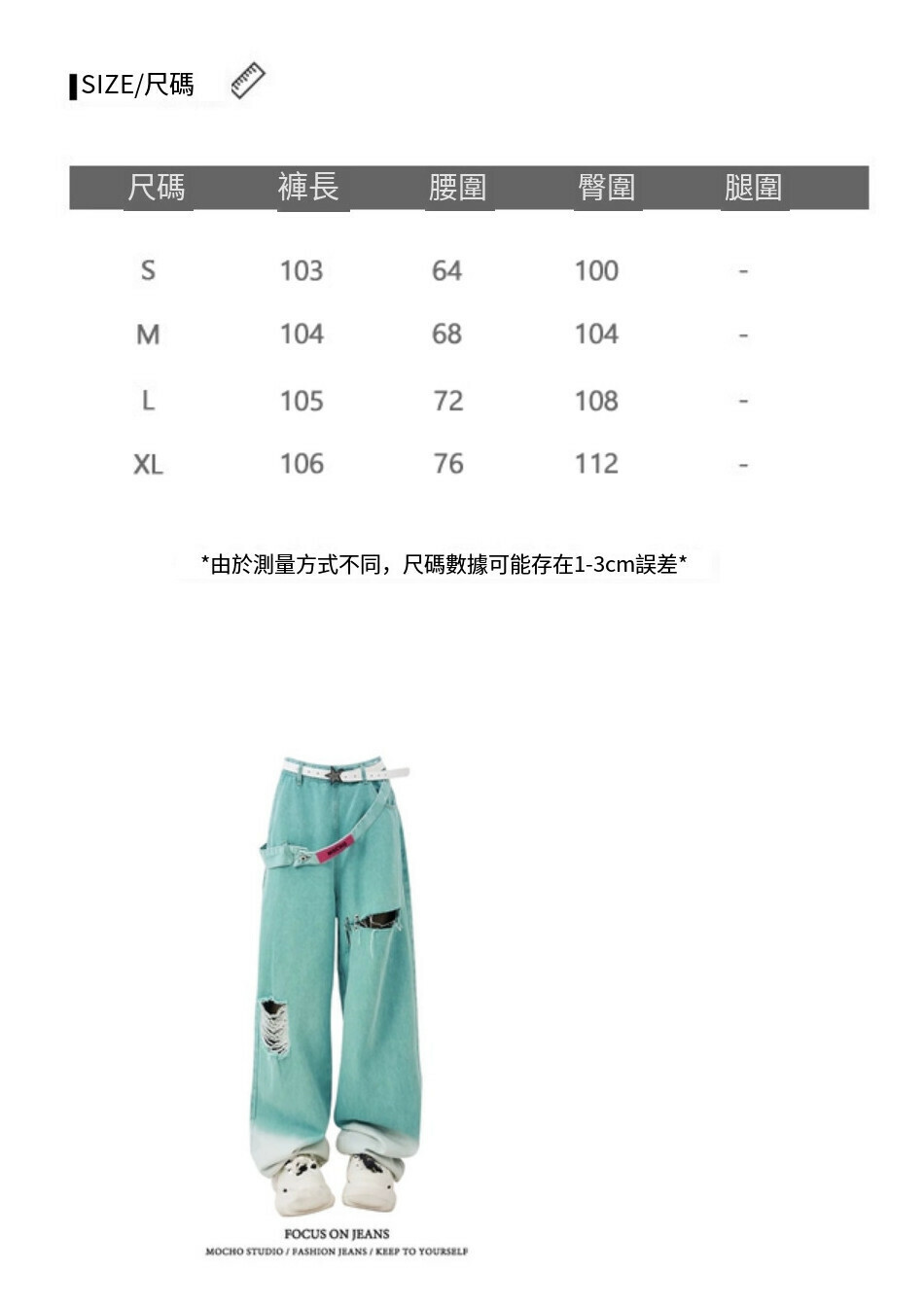 熱賣破洞牛仔褲【漸變色】尺碼【M碼-XL碼】【下單後請聯絡客服確認發貨尺碼】