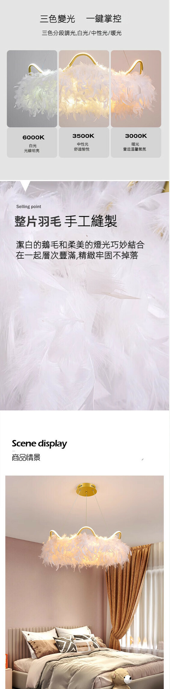 熱賣浪漫溫馨羽毛吊燈(金色直徑50cm/三色變光)