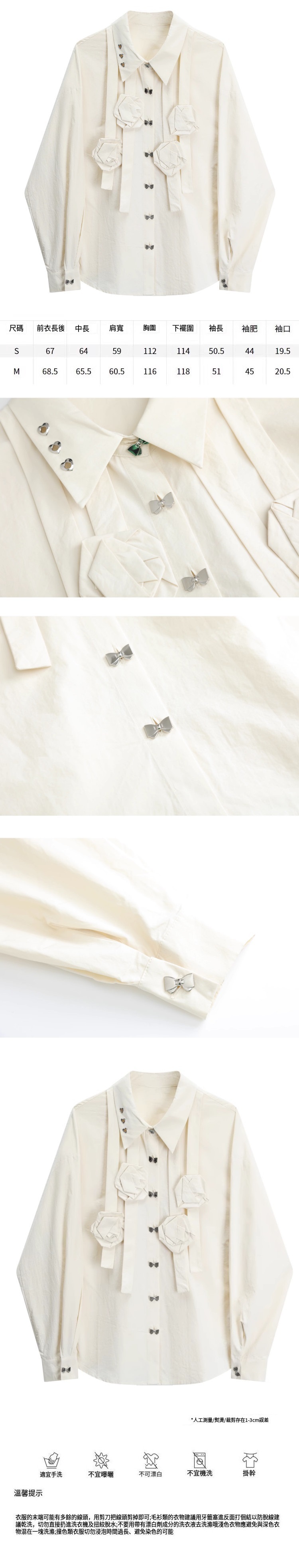熱賣玫瑰花蝴蝶結扣襯衫(杏色)(S/M碼)(下單後聯絡客服確認發貨尺碼)