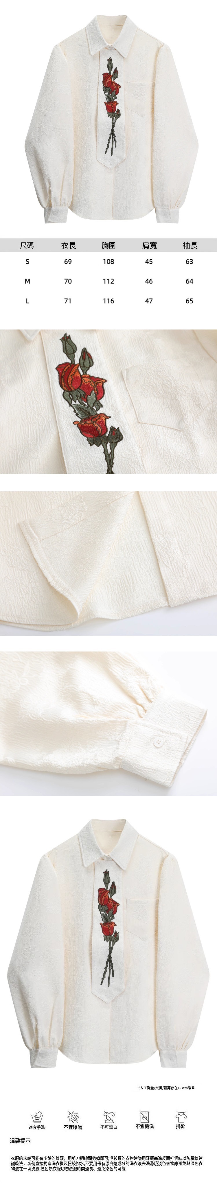 熱賣玫瑰刺繡長袖襯衫(圖片色)(S-L碼)(下單後聯絡客服確認發貨尺碼)