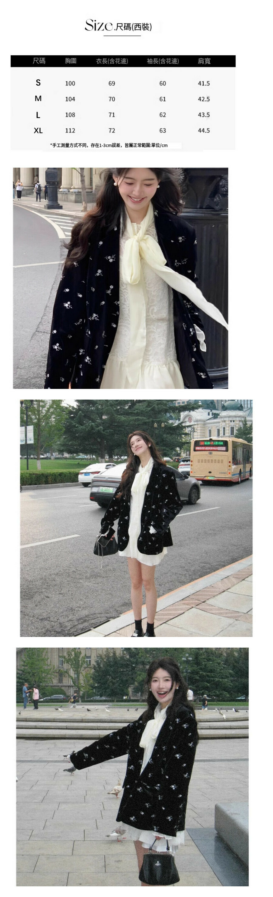 熱賣玫瑰刺繡絲絨西裝外套【銀色玫瑰絲絨西裝】尺碼【S碼—XL碼】【下單後請聯絡客服確認發貨尺碼】