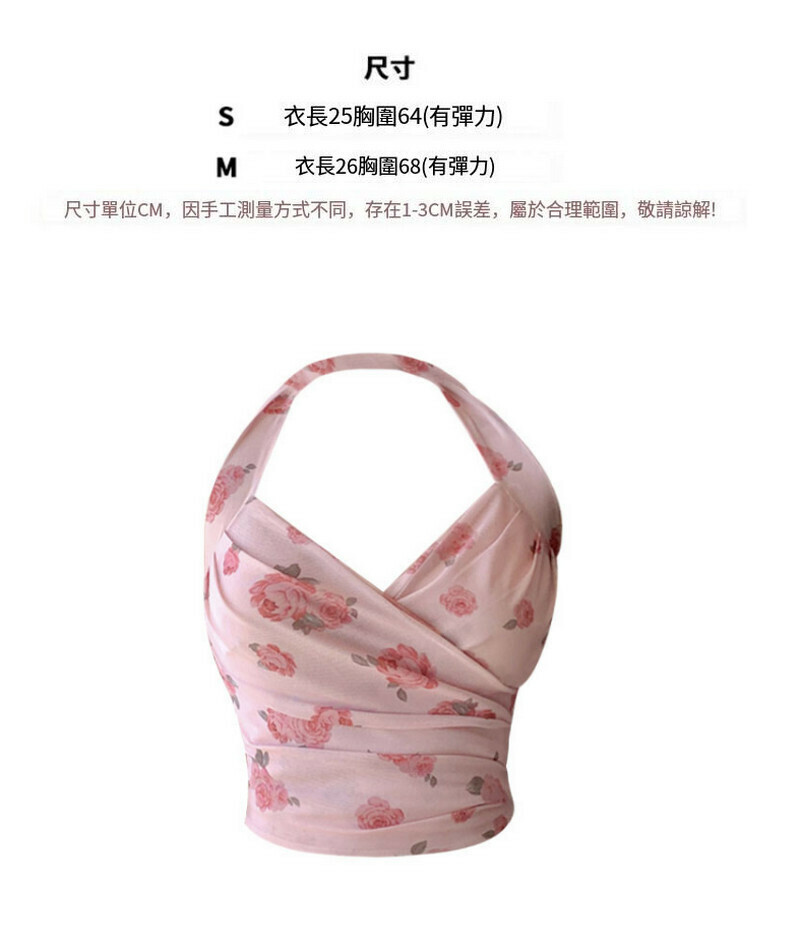 熱賣玫瑰印花掛脖吊帶(粉色 S碼-L碼)(下單後請聯絡客服確認發貨尺碼)