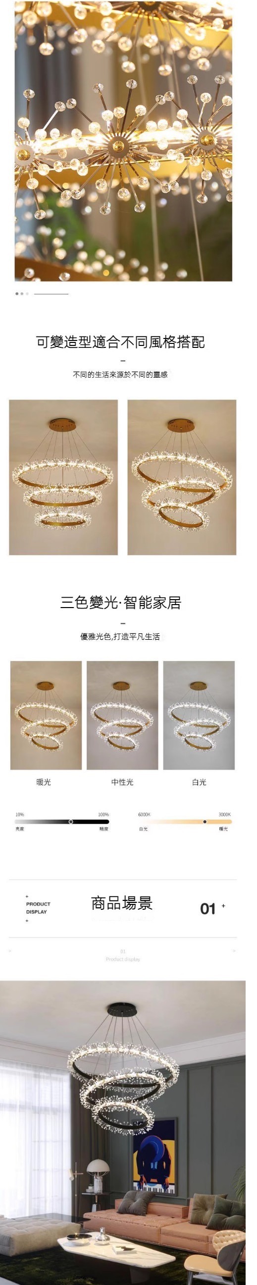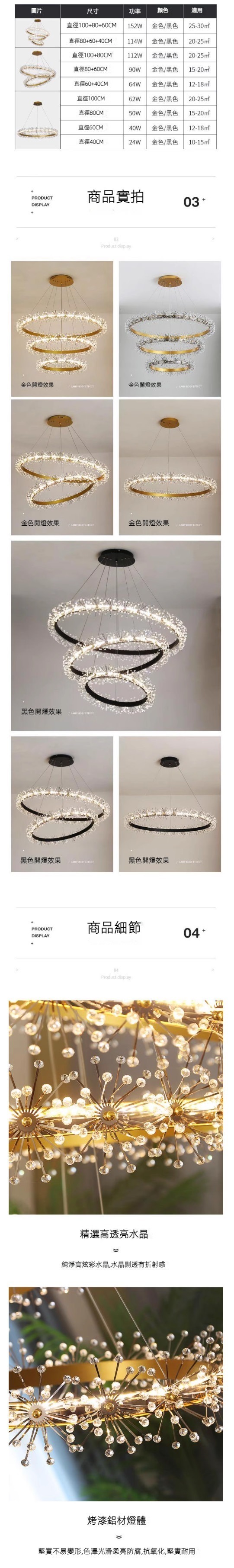 熱賣圓形水晶花環吊燈(金色一圈80cm三色光)