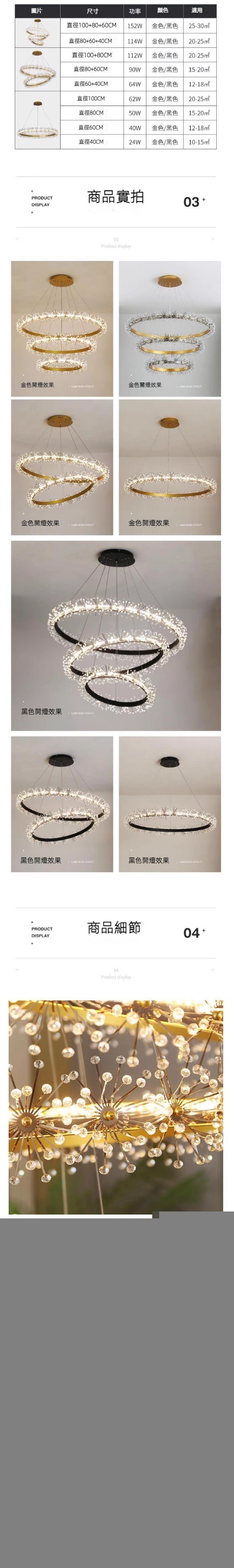 熱賣圓形水晶花環吊燈(金色三圈100+80+60cm暖光)