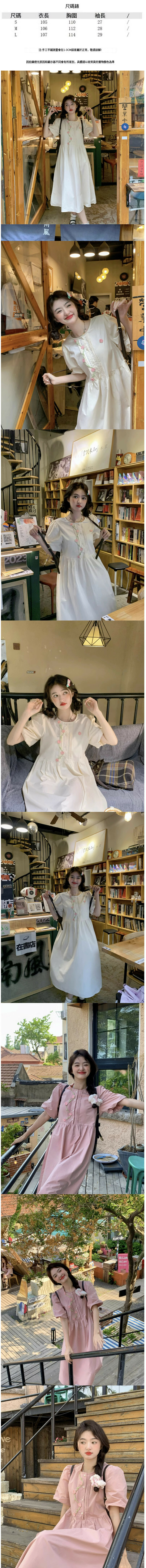 熱賣圓領泡泡袖連衣裙【粉色】【S-L碼】(下單後請聯絡客服確認發貨尺碼)
