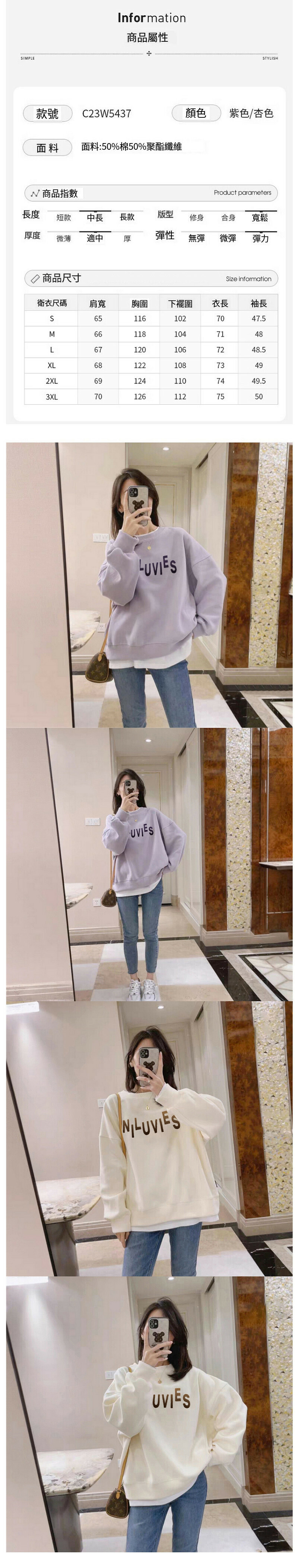 熱賣圓領套頭長袖衛衣(杏色 S碼-XXXL碼)(下單後請聯絡客服確認發貨尺碼)