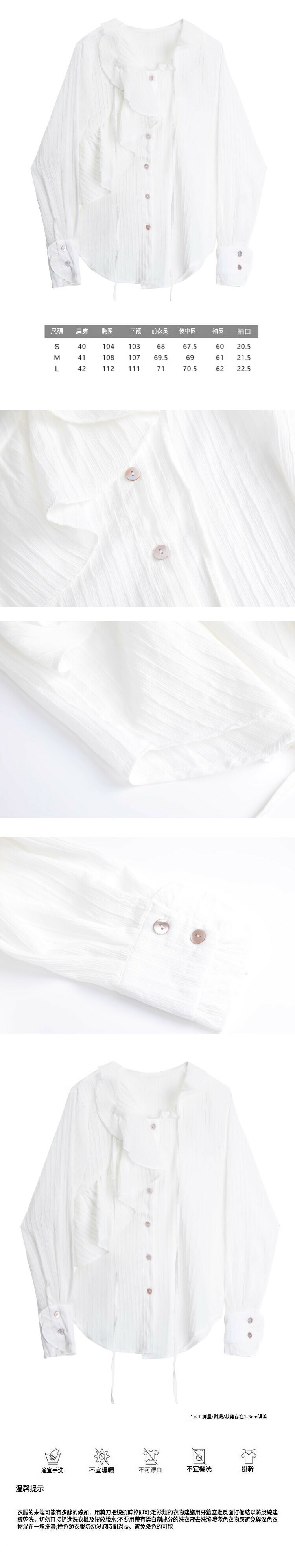 熱賣荷葉邊不規則系帶長袖襯衫(白色)(S-L碼)(下單後聯絡客服確認發貨尺碼)