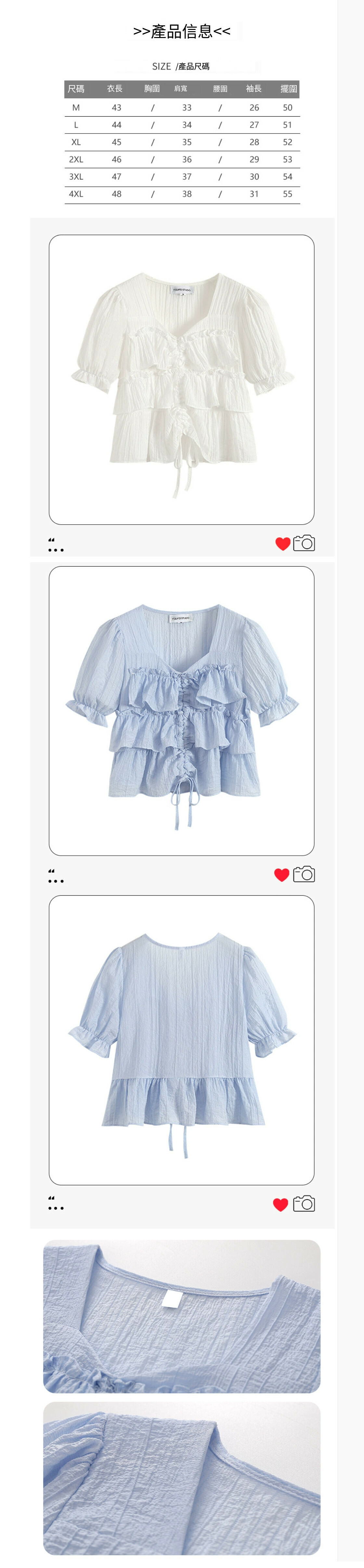 熱賣荷葉邊泡泡袖上衣【淺藍色】【M-4XL碼】(下單後請聯絡客服確認發貨尺碼)