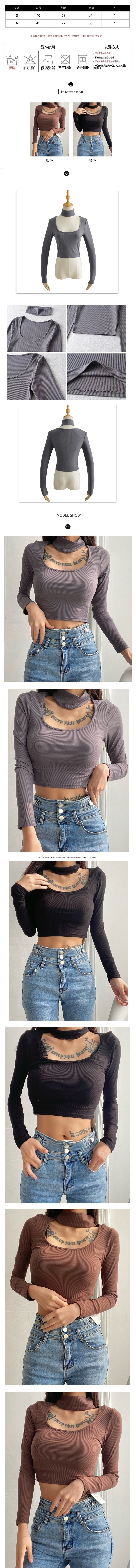 熱賣圍脖設計低圓領長袖T卹(黑色)(S/M碼)(下單後聯絡客服確認發貨尺碼)