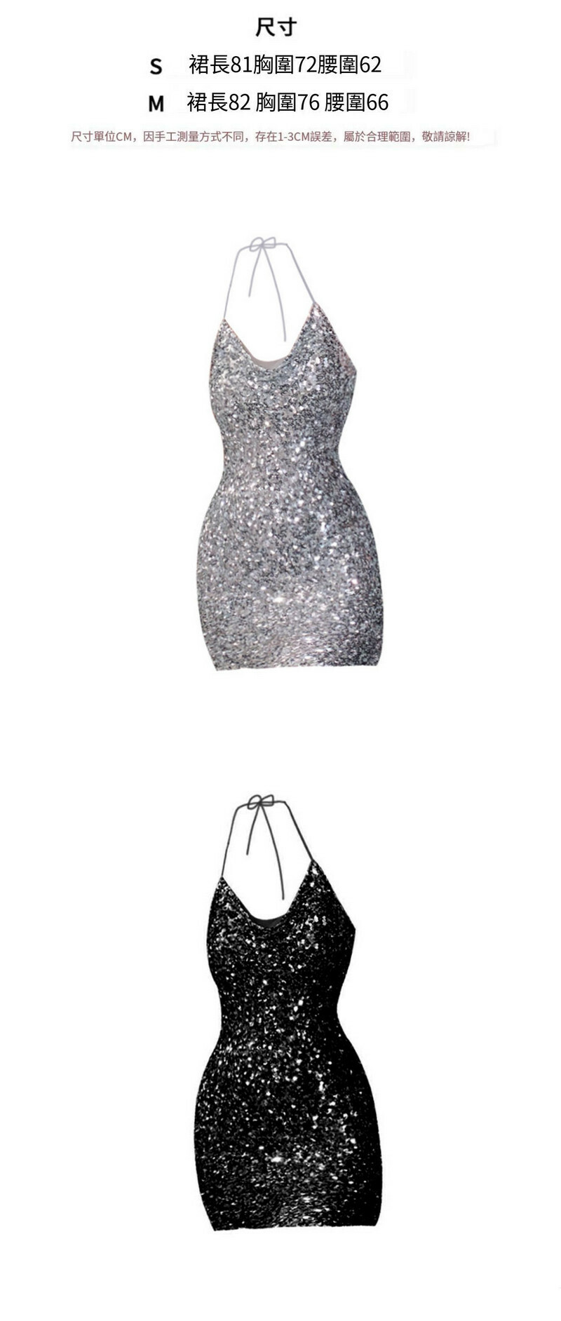 熱賣亮片掛脖吊帶連衣裙(黑色 L碼)(下單後請聯絡客服確認發貨尺碼)