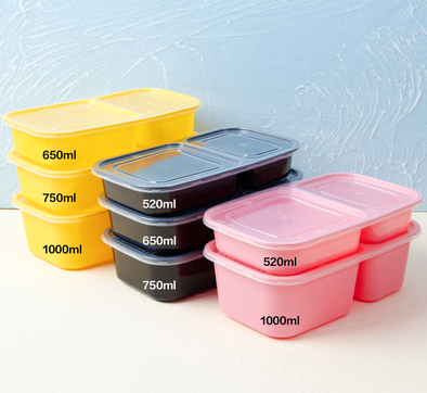 熱賣(150套裝)一次性方形雙格外賣打包餐盒(粉色-五五分)(容量:750ml)(尺寸:20cm*11.6cm*4.6cm)