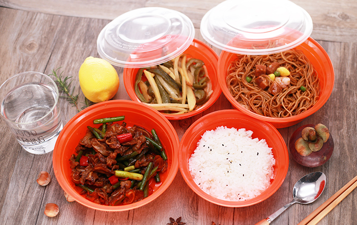 熱賣(150套裝)一次性方形帶蓋外賣打包餐盒(橙色)(容量:600ml)(尺寸:13.2cm*19.8cm*4.3cm)