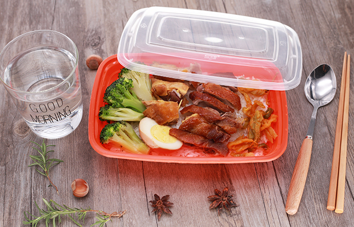 熱賣(150套裝)一次性方形帶蓋外賣打包餐盒(橙色)(容量:750ml)(尺寸:22.3cm*15cm*5cm)
