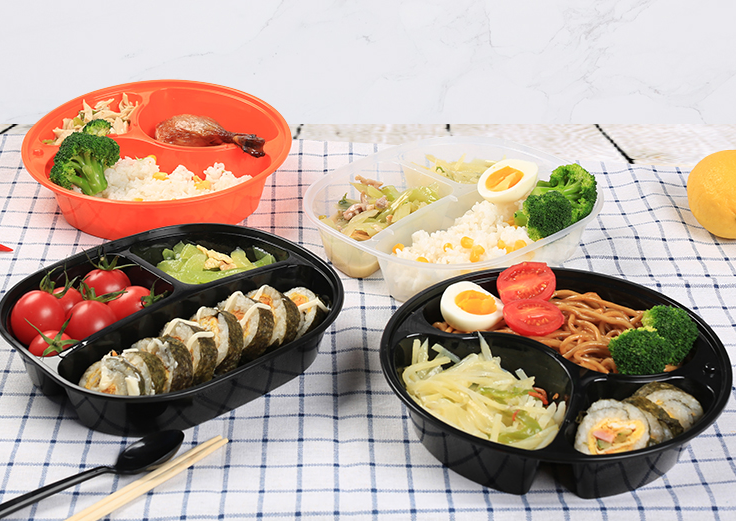 熱賣(150套裝)一次性方形三格外賣打包餐盒(透明-方形A款)(容量:1000ml)(尺寸:21.6cm*4.2cm*18.4cm)
